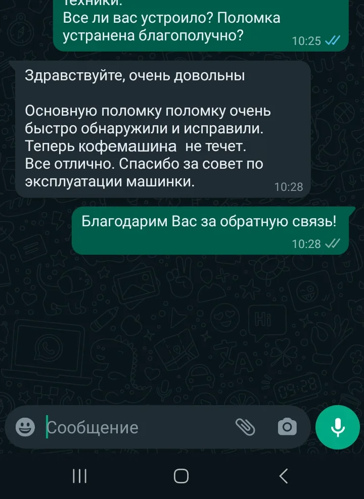 После ремонта мастер проверит работу кофемашины и оформит гарантию на выполненные работы.